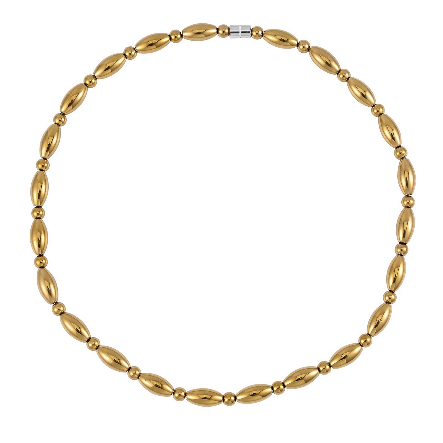 This hematite beaded necklace offers a unique design, blending the elegance of hematite beads with the functionality of a magnetic clasp. Crafted to provide durability and style, this 20-inch necklace stands out with its distinctive pattern of alternating beads.