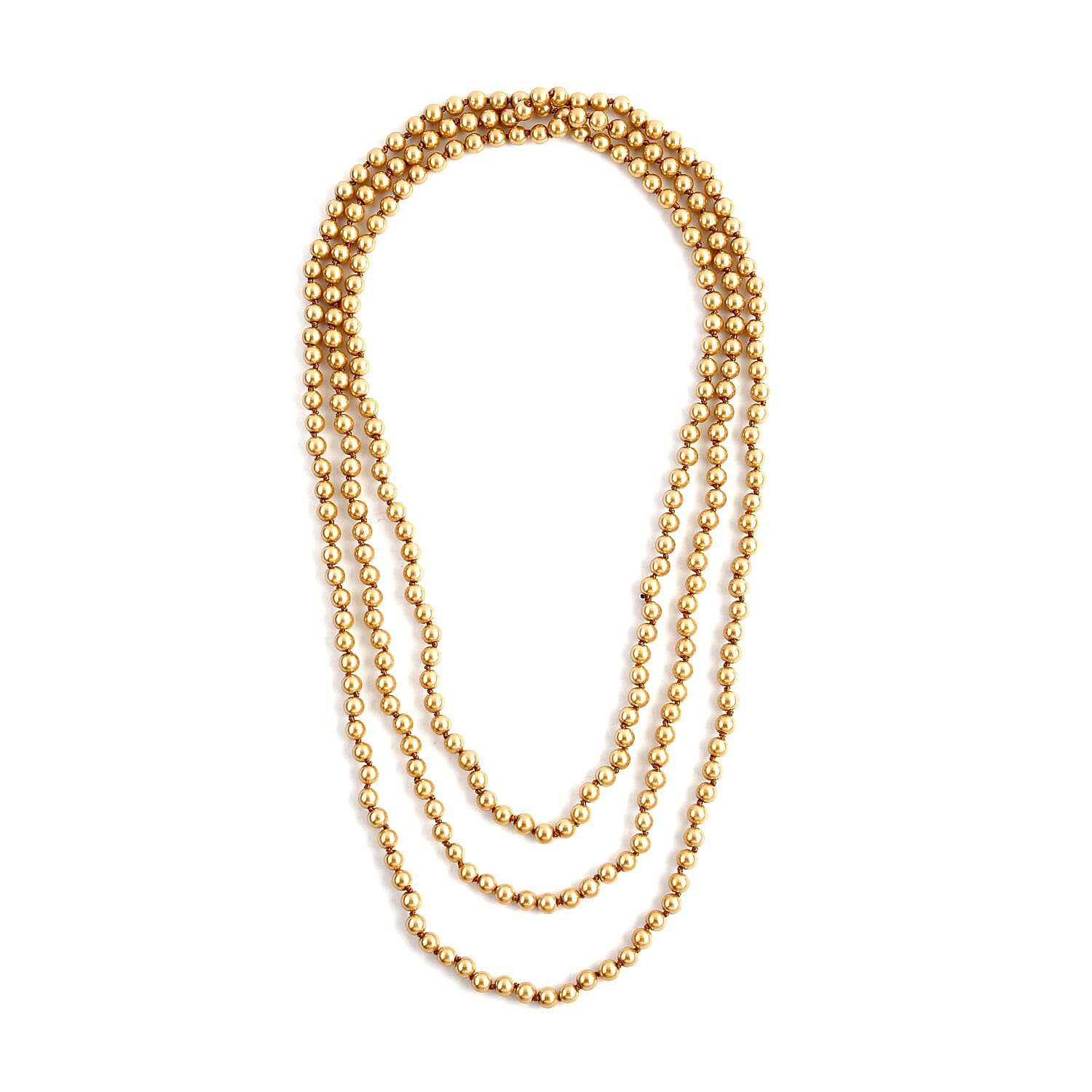 Golden Pearl Glass Beaded Endless Necklace 100 Inches