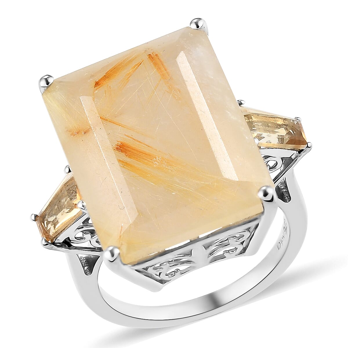 Golden Rutilated Quartz and Brazilian Citrine Ring in Platinum Over Sterling Silver (Size 9.0) 21.10 ctw