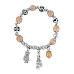 Golden Rutilated Quartz Beaded Stretch Bracelet with Silvertone Charm 47.10 ctw