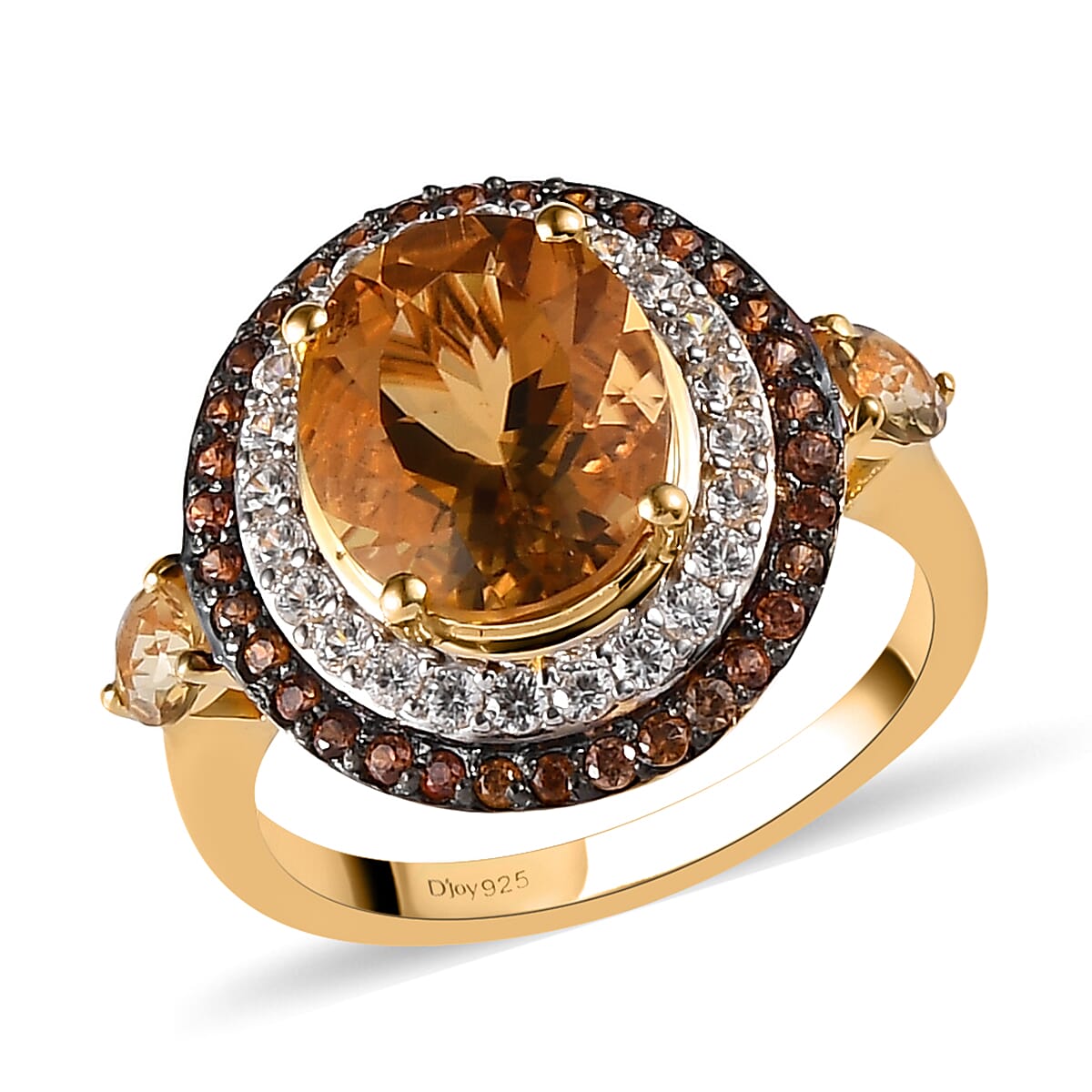 Golden Scapolite, Natural White and Brown Zircon Ring in Vermeil Yellow Gold Over Sterling Silver 4.40 ctw