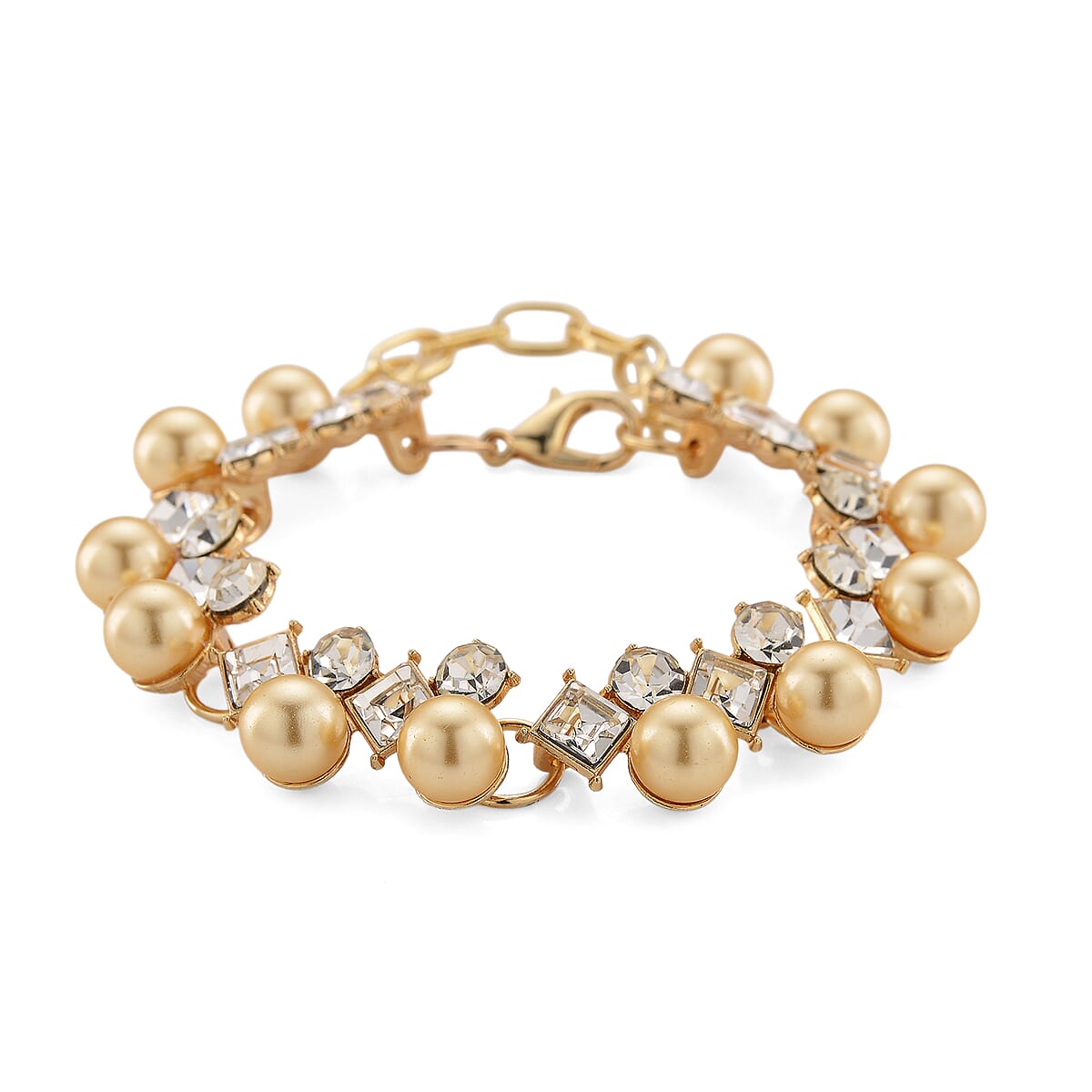 Golden Shell Pearl and Austrian Crystal Bracelet in Goldtone (6.50-8.0In)