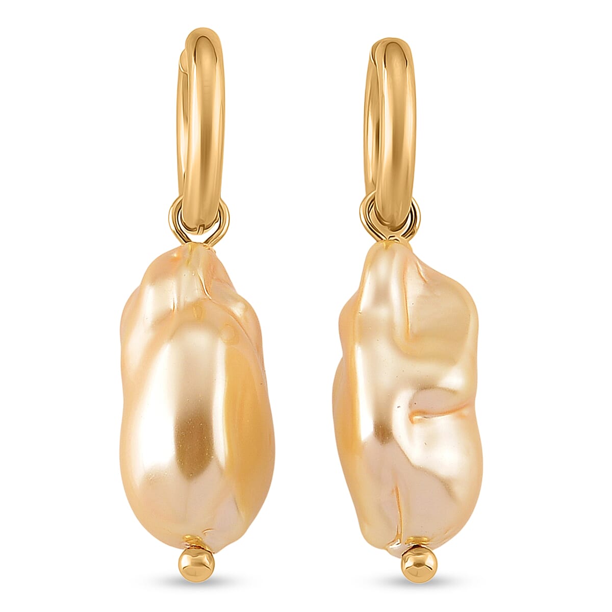Golden Shell Pearl Earrings in ION Plated YG Stainless Steel
