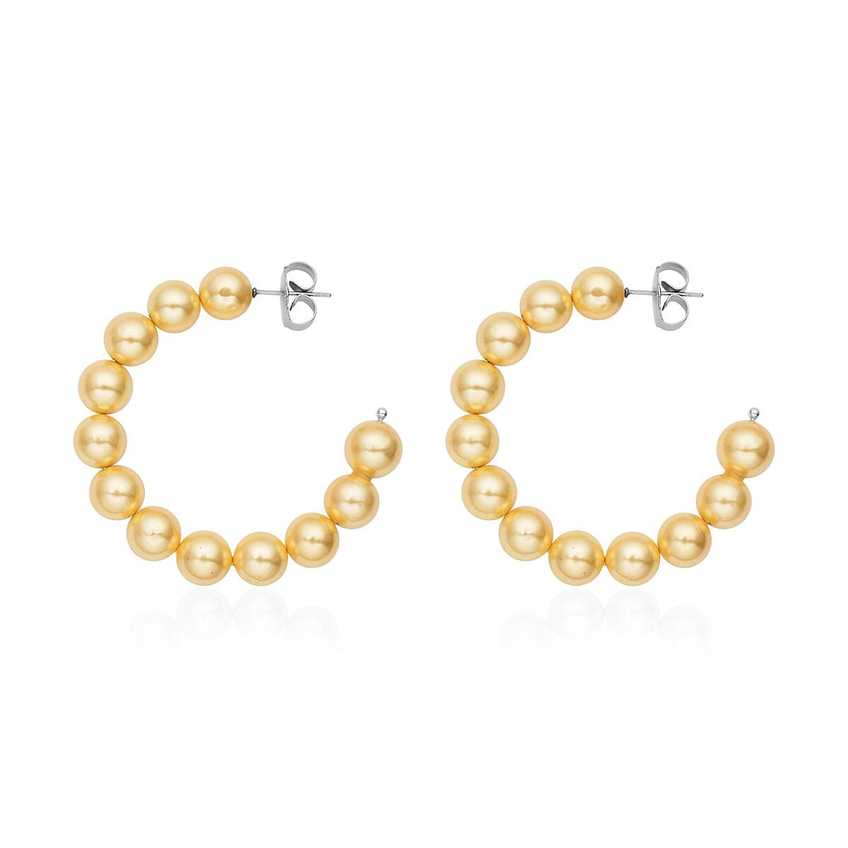 Golden Shell Pearl J-Hoop Earrings in Stainless Steel