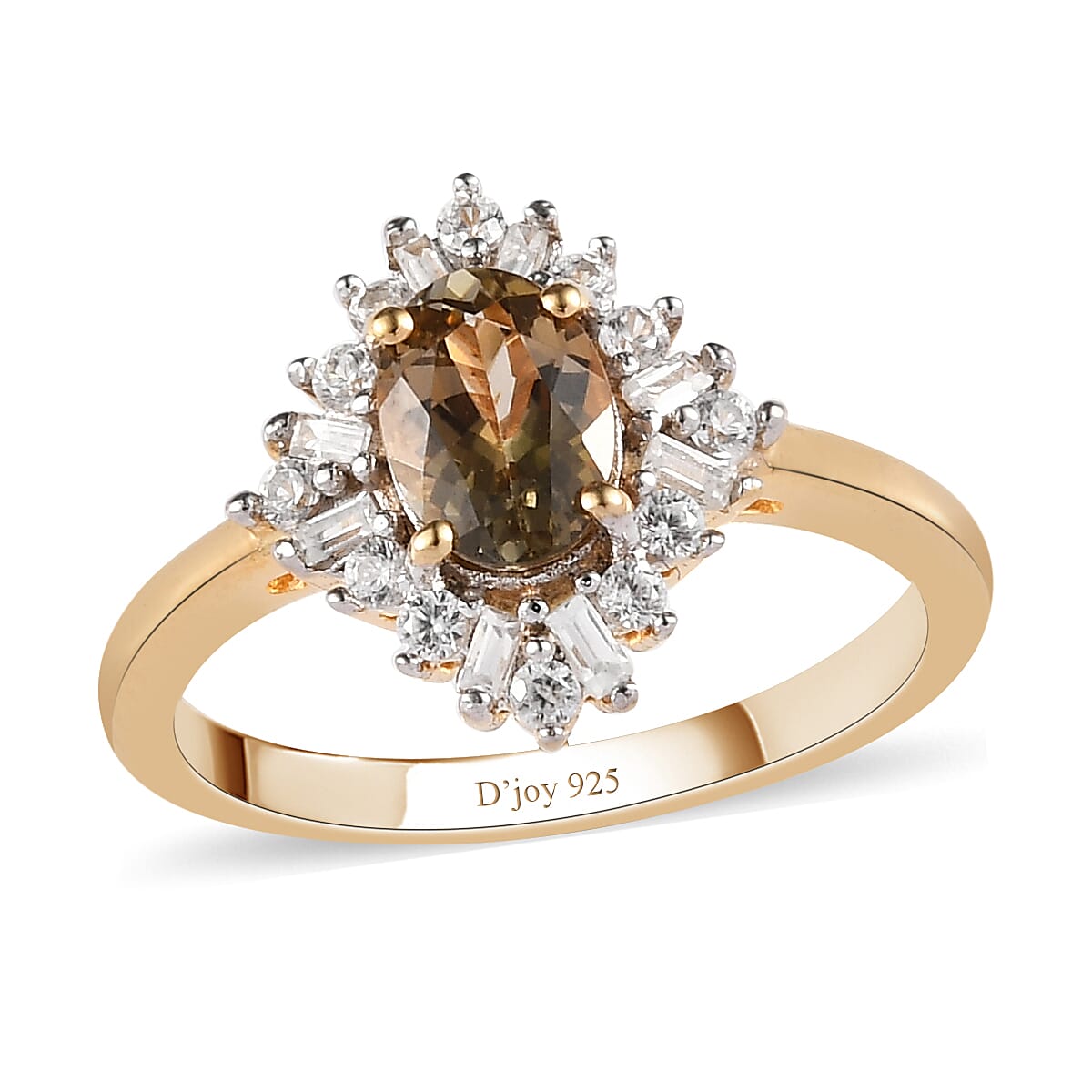 Golden Tanzanite and Natural White Zircon Ring in Vermeil Yellow Gold Over Sterling Silver (Size 8.0) 1.25 ctw