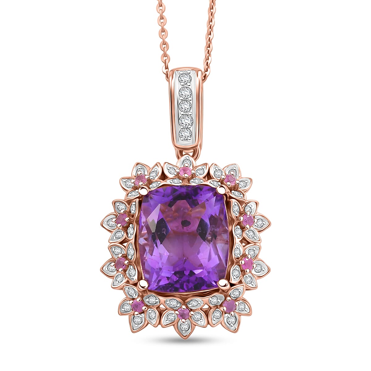 GP AAA Rose De France Amethyst and Multi Gemstone 6.20 ctw Pendant Necklace in 18K Vermeil Rose Gold Over Sterling Silver 20 Inches