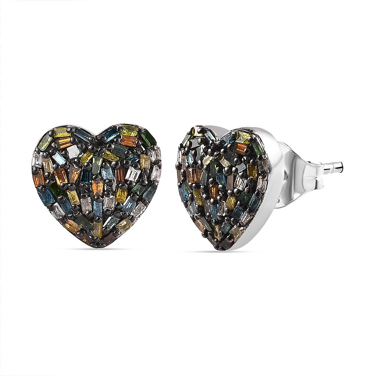 GP Amore Collection Multi Diamond Heart Stud Earrings in Platinum Over Sterling Silver 0.50 ctw