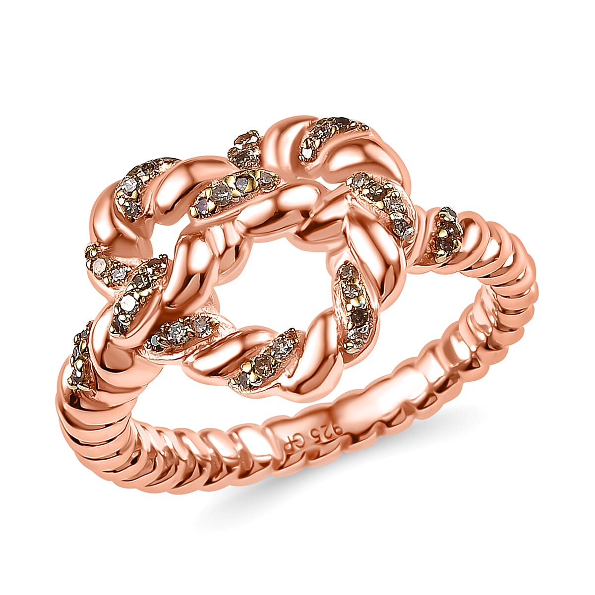 GP Amore Collection Natural Champagne Diamond 0.20 ctw Love Knot Ring in 18K Vermeil Rose Gold Over Sterling Silver (Size 10.0)