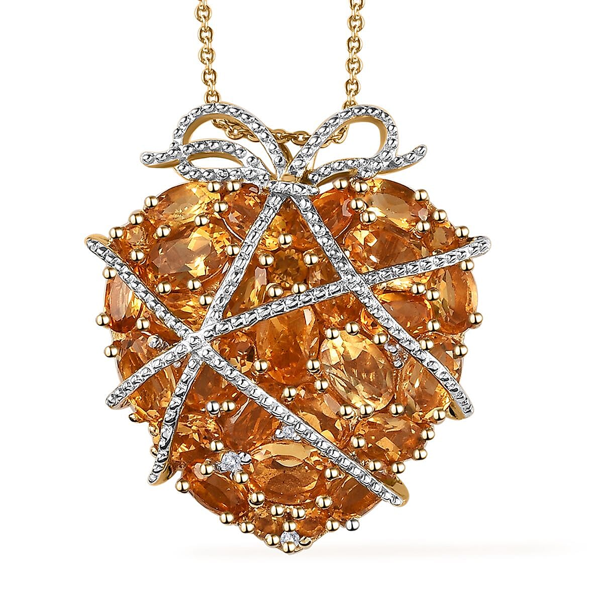 GP Amore Collection Premium Brazilian Citrine and White Zircon Heart Pendant Necklace 20 Inches in Vermeil Yellow Gold Over Sterling Silver 7.35 ctw