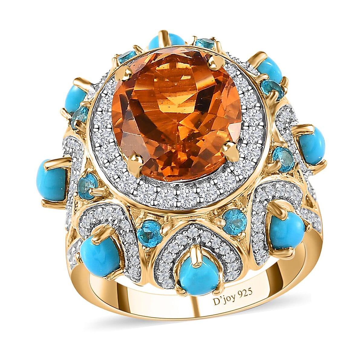 Indulge your senses in the opulent allure of our premium Santa Ana Madeira Citrine and multi-gemstone ring in vermeil yellow gold over sterling silver. This captivating piece is more than just jewelry; it's an expression of your unique style and an embodiment of timeless elegance.
