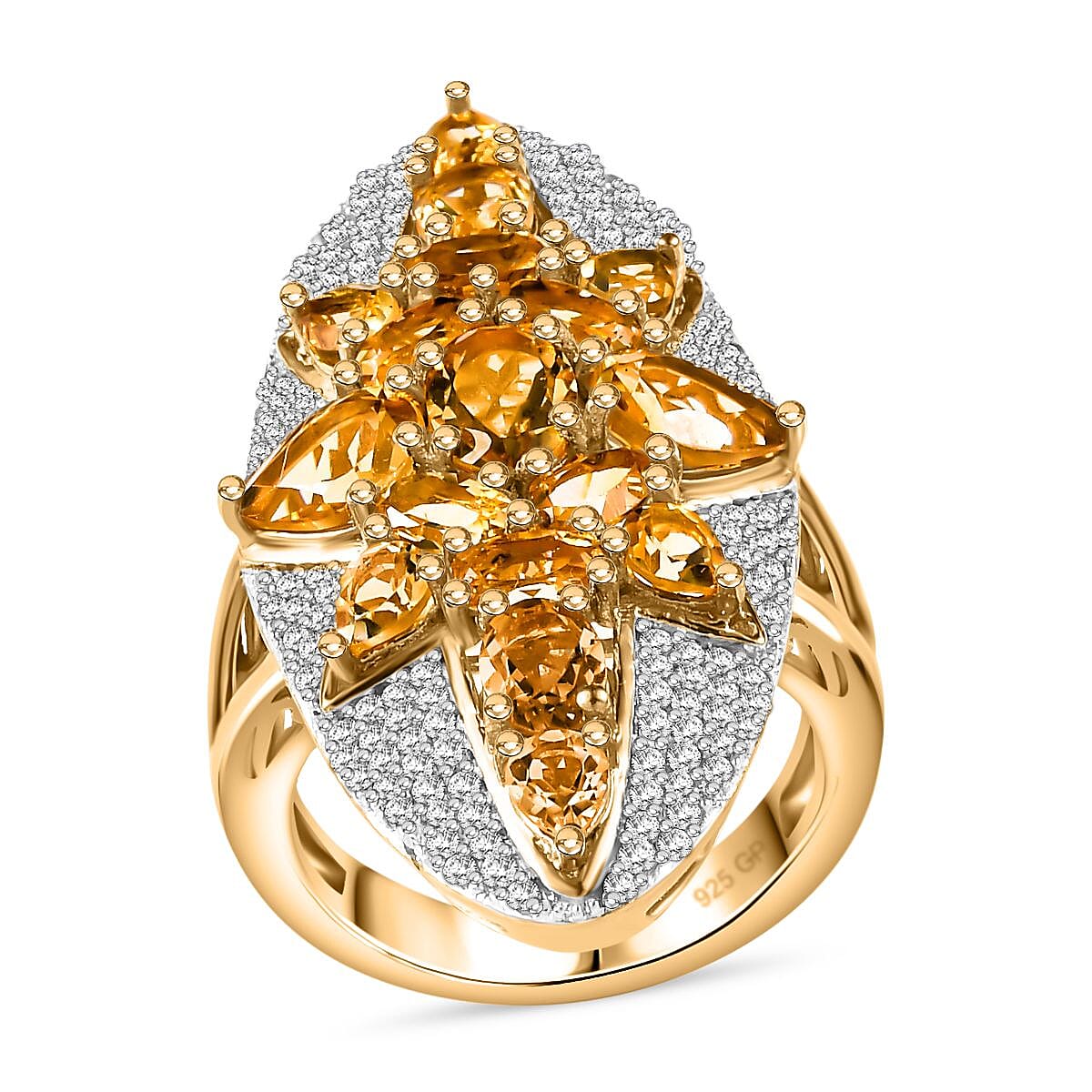 GP Celestial Dream Collection Brazilian Citrine and White Zircon 6.50 ctw Ring in 18K Vermeil Yellow Gold Over Sterling Silver (Size 7.0)