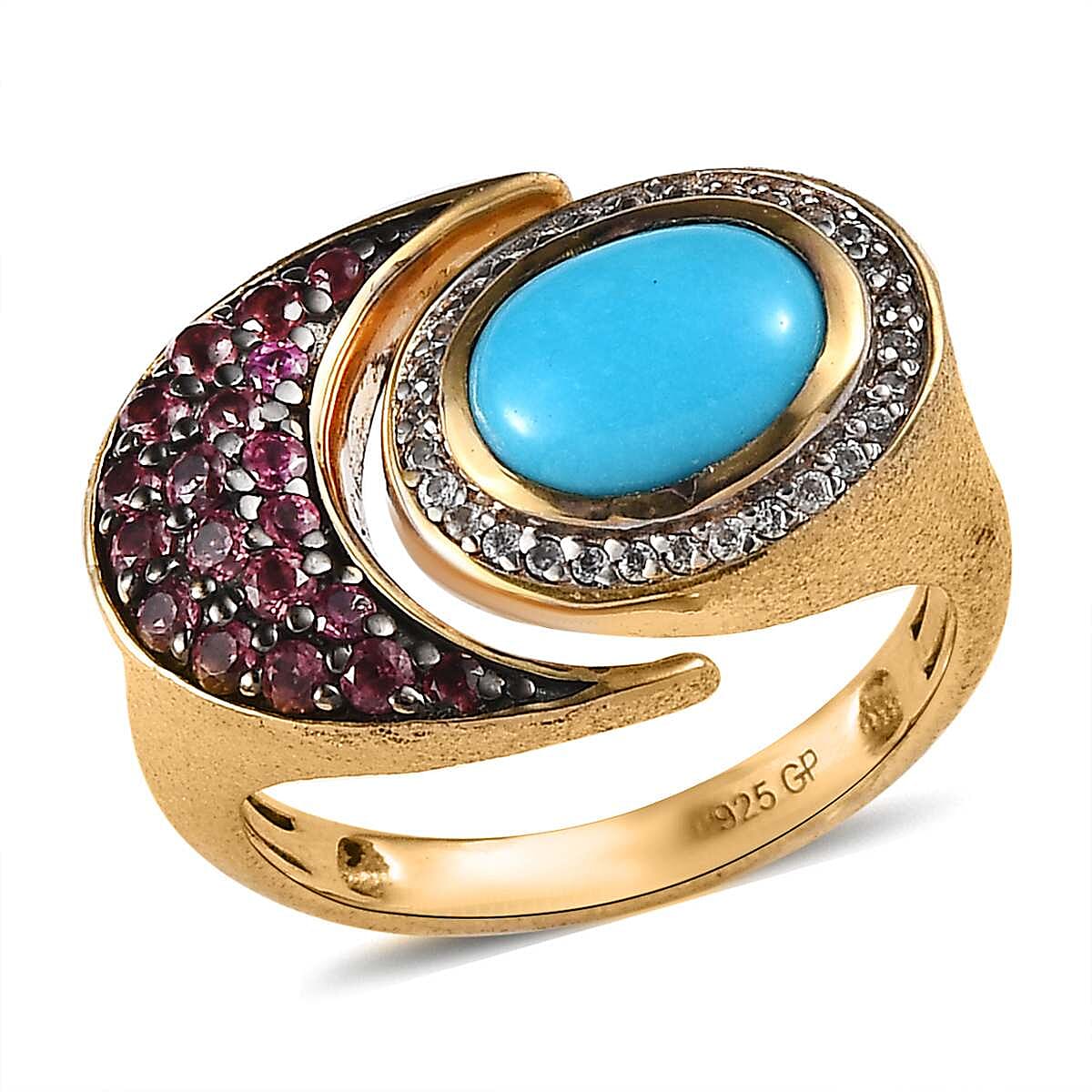 GP Celestial Dream Collection Sleeping Beauty Turquoise and Multi Gemstone Celestial Ring in Vermeil Yellow Gold Over Sterling Silver (Size 6.0) 2.25 ctw