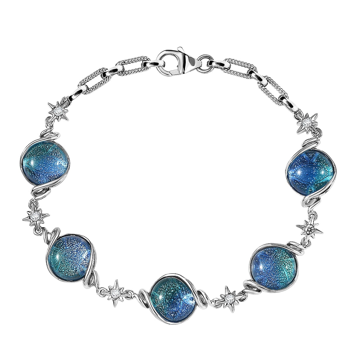 GP Celestial Dream Special Murano Style and White Zircon 0.30 ctw Bracelet in Rhodium Over Sterling Silve (7.25 In) (Del. in 12-15 Days)