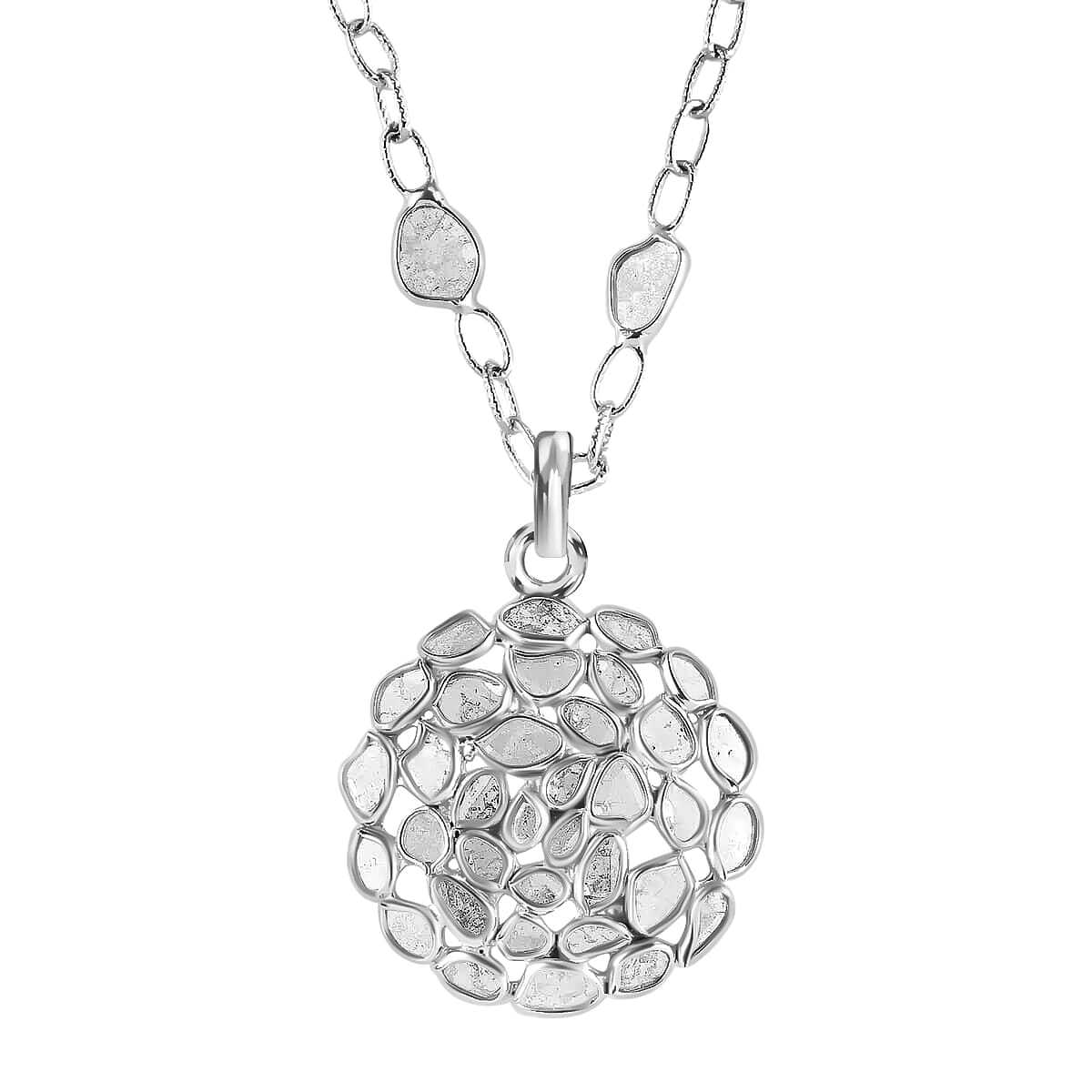 GP Celestial Dreams Collection Polki Diamond Necklace, 18-20 Inch Necklace, Platinum Over Sterling Silver Necklace, Floral Necklace 4.00 ctw