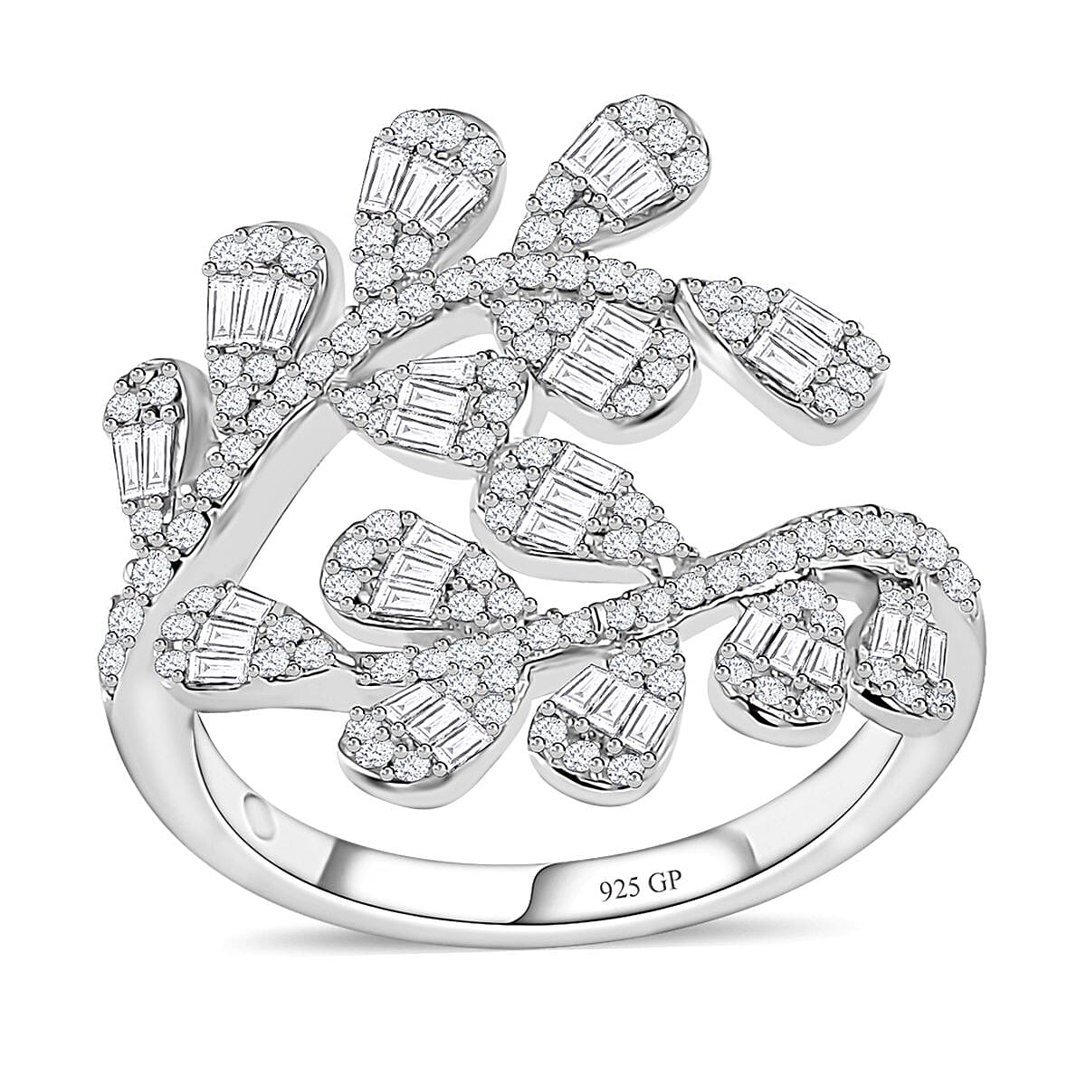 GP Diamond Bypass Ring in Platinum Over Sterling Silver (Size 10.0) 1.00 ctw