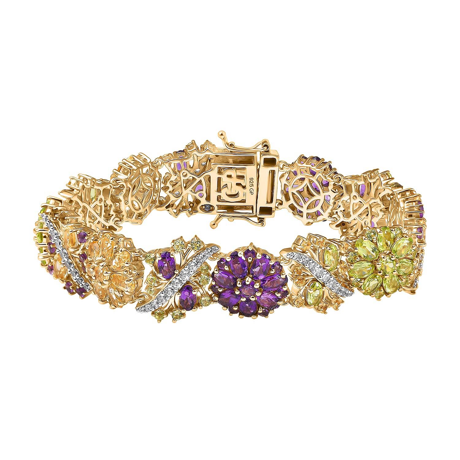 Indulge in elegance with this GP multi-gemstone bracelet in sterling silver. This floral gemstone bracelet adds vibrant charm to your collection. The colorful gemstone bracelet elevates every look with refined style. You'll love how it sparkles and complements your flair.