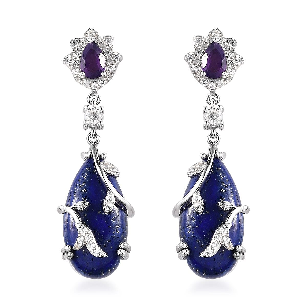 GP Italian Garden Collection Lapis Lazuli and Multi Gemstone Dangling Earrings in Platinum Over Sterling Silver 20.75 ctw