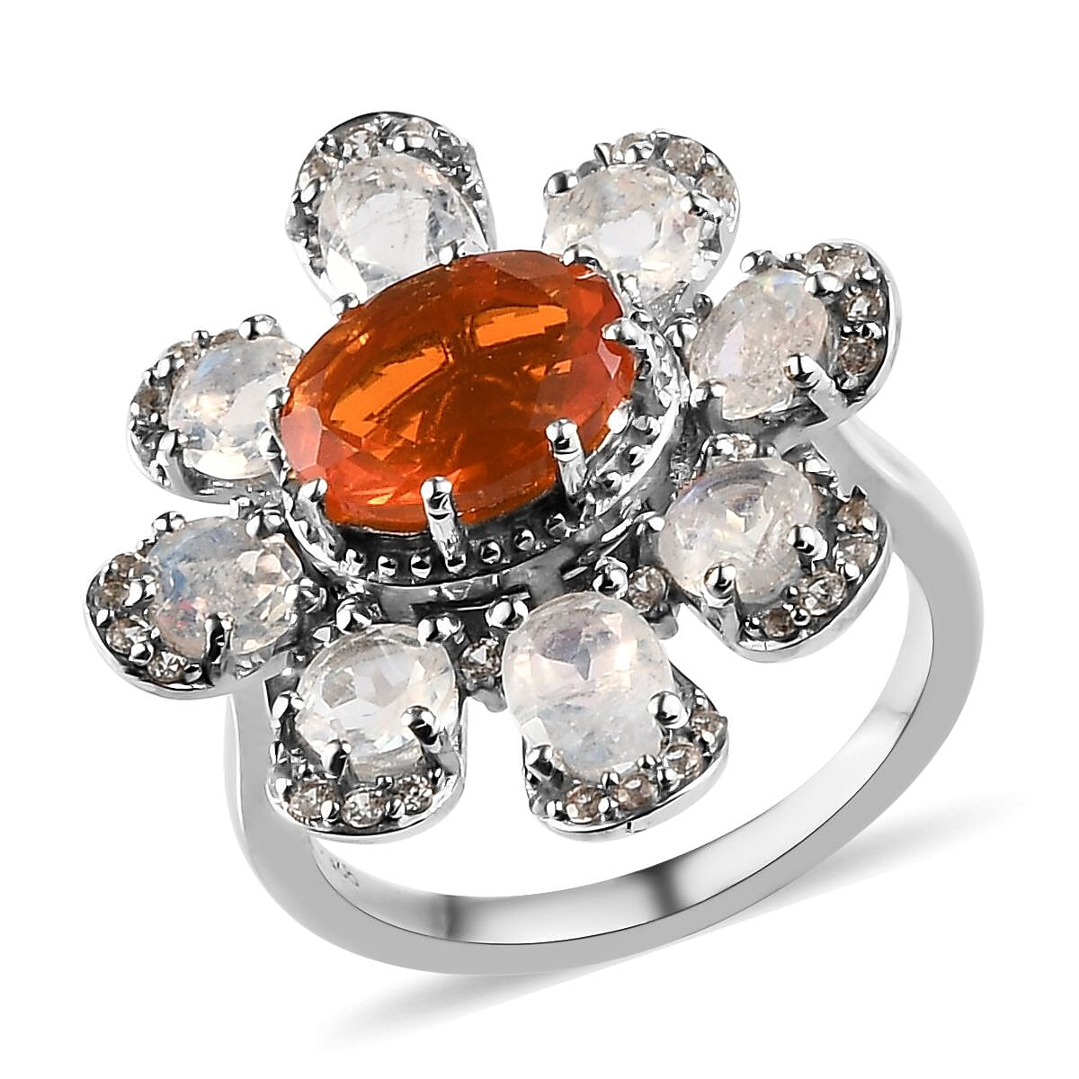GP Italian Garden Collection Mexican Fire Opal and Multi Gemstone Fire and Ice Ring in Platinum Over Sterling Silver (Size 7.0) 5.00 ctw