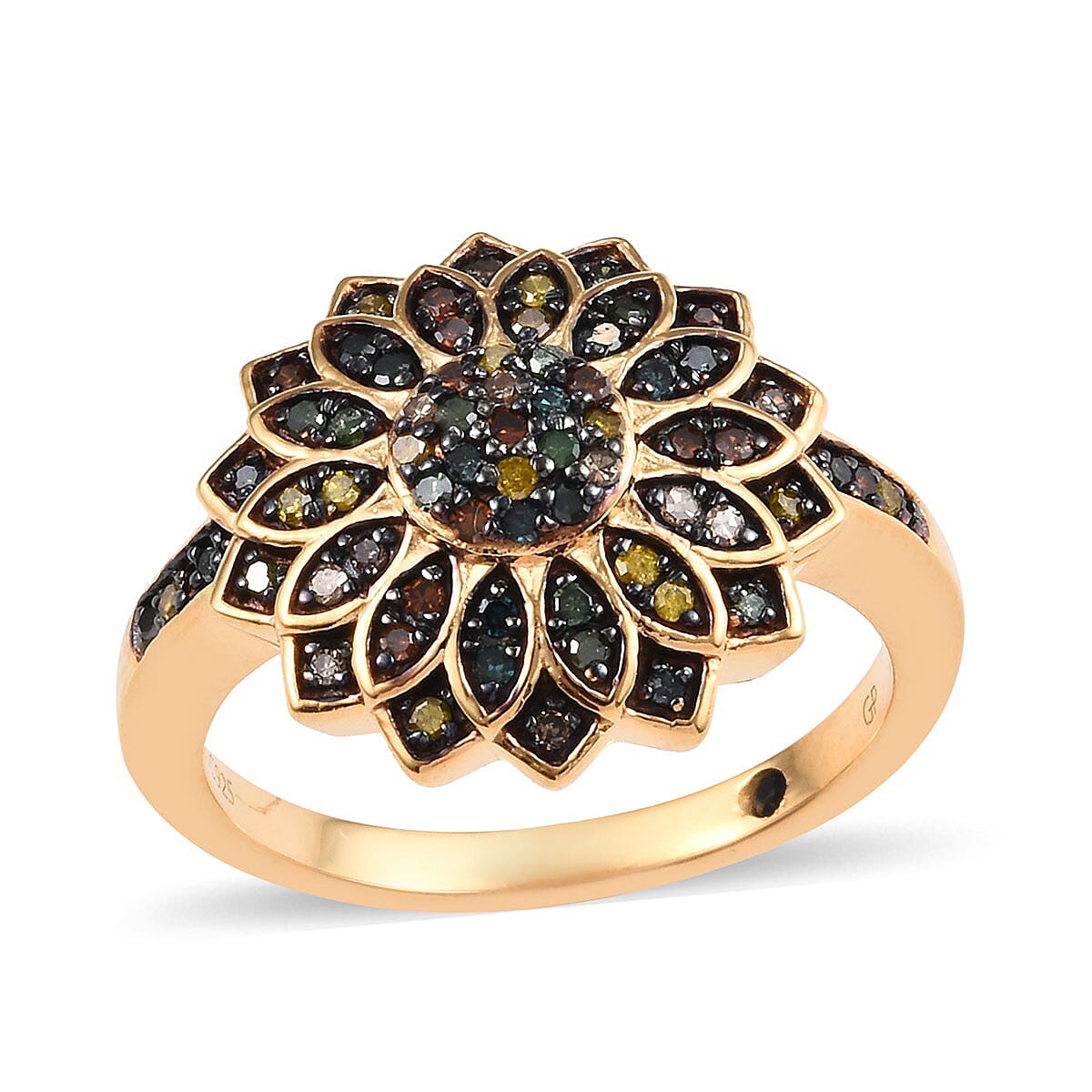 GP Italian Garden Collection Multi Diamond Floral Ring in Rhodium & Vermeil Yellow Gold Over Sterling Silver 0.50 ctw