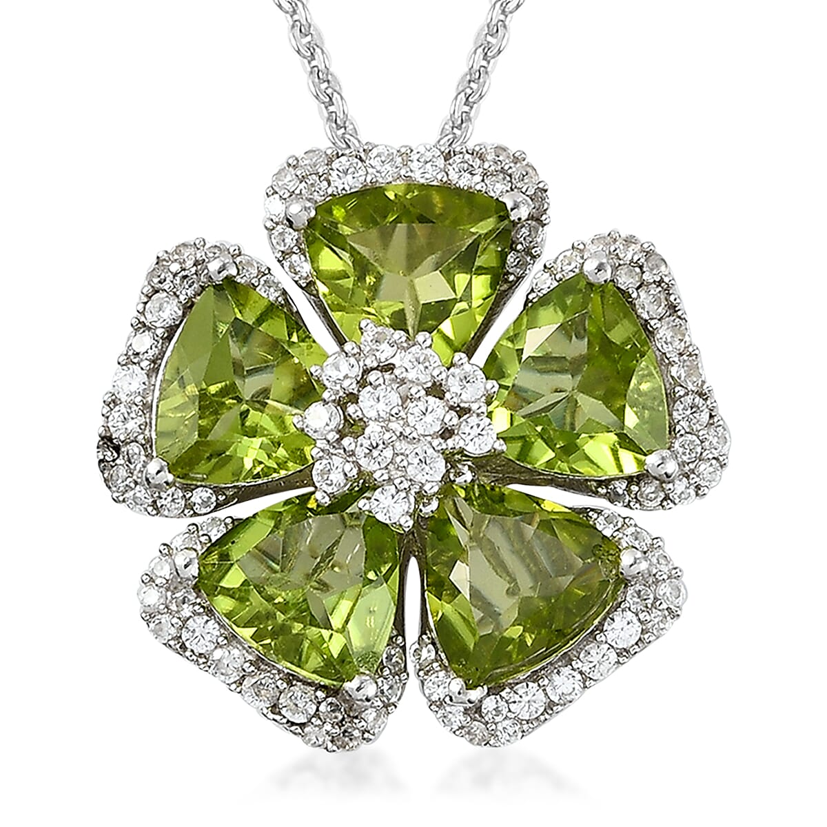 GP ITALIAN GARDEN COLLECTION Peridot and Natural White Zircon Floral Pendant Necklace 20 Inches in Platinum Over Sterling Silver 6.50 ctw