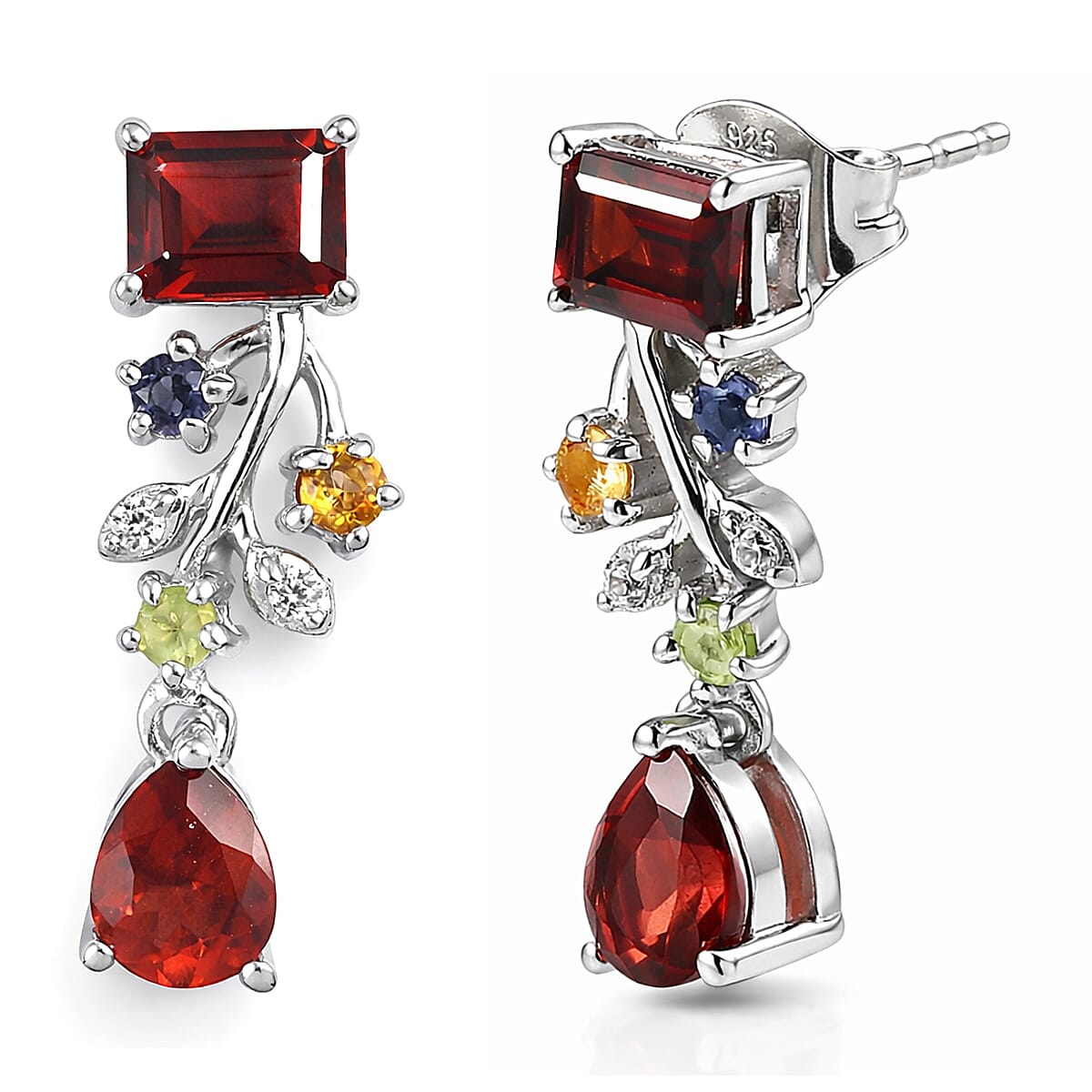 GP Italian Garden Collection Premium Mozambique Garnet and Multi Gemstone 2.40 ctw Earrings in Rhodium Over Sterling Silver