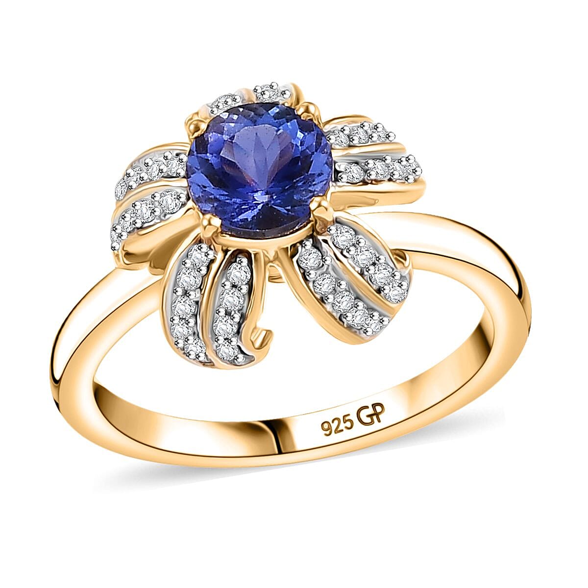 GP Italian Garden Collection Tanzanite and Diamond 1.35 ctw La Campanula Ring in 18K Vermeil Yellow Gold Over Sterling Silver (Size 7.0)