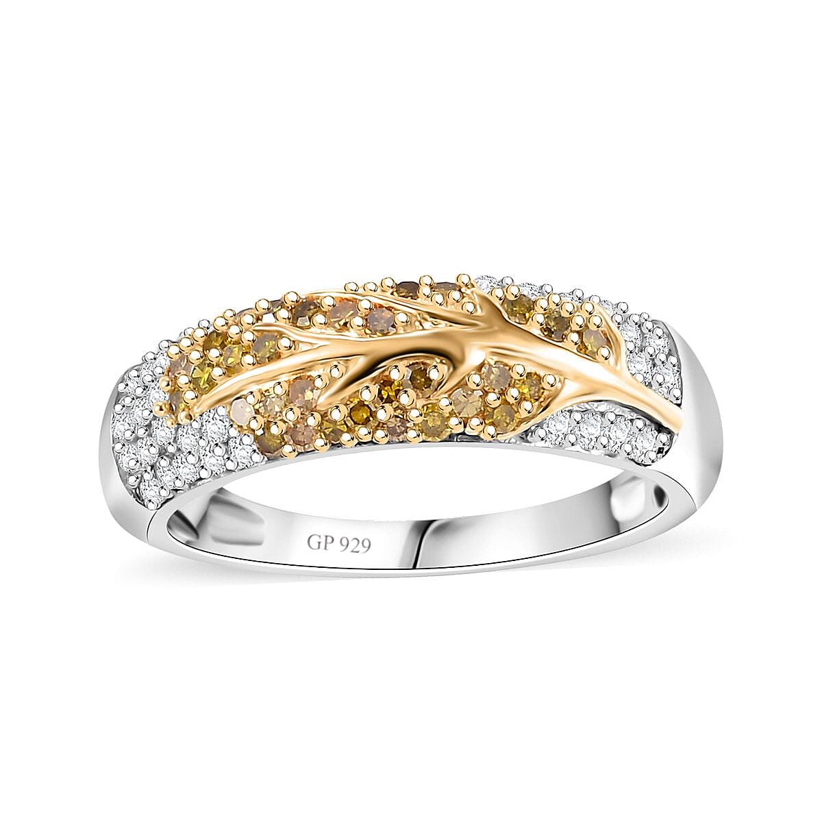 GP Italian Garden Collection Yellow and White Diamond 0.50 ctw Tree of Life Ring in Vermeil YG and Rhodium Over Sterling Silver (Size 7.0)
