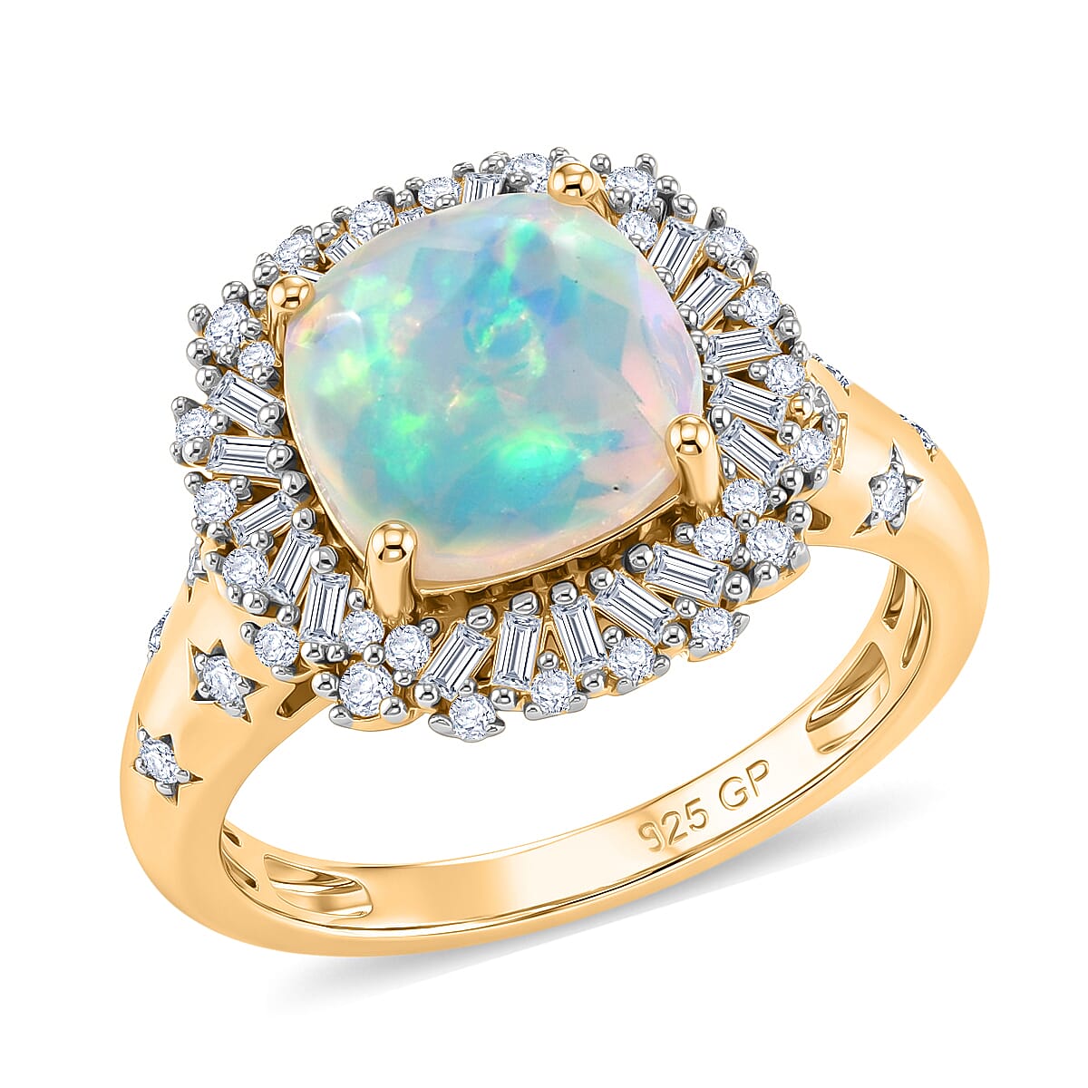 GP Premium Ethiopian Opal and Diamond 2.35 ctw Ring in 18K Vermeil Yellow Gold Over Sterling Silver (Size 7.0)