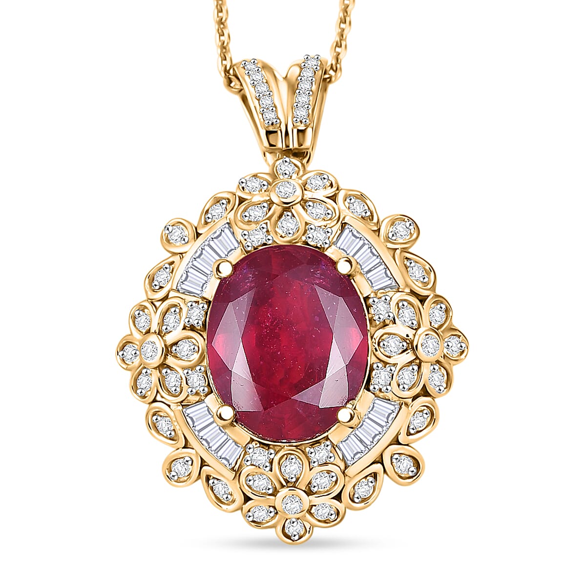 GP Premium Niassa Ruby FF and White Zircon 6.80 ctw Pendant Necklace in 18K Vermeil Yellow Gold Over Sterling Silver 20 Inches