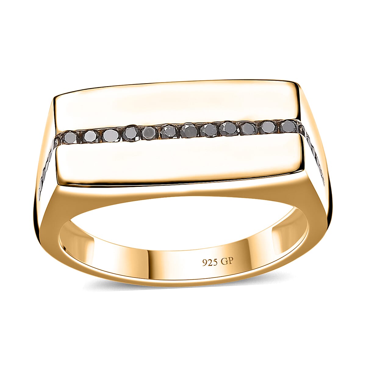 GP Royal Art Deco Collection Black Diamond Men's Ring in 18K Vermeil Yellow Gold Over Sterling Silver (Size 11.0) 0.35 ctw