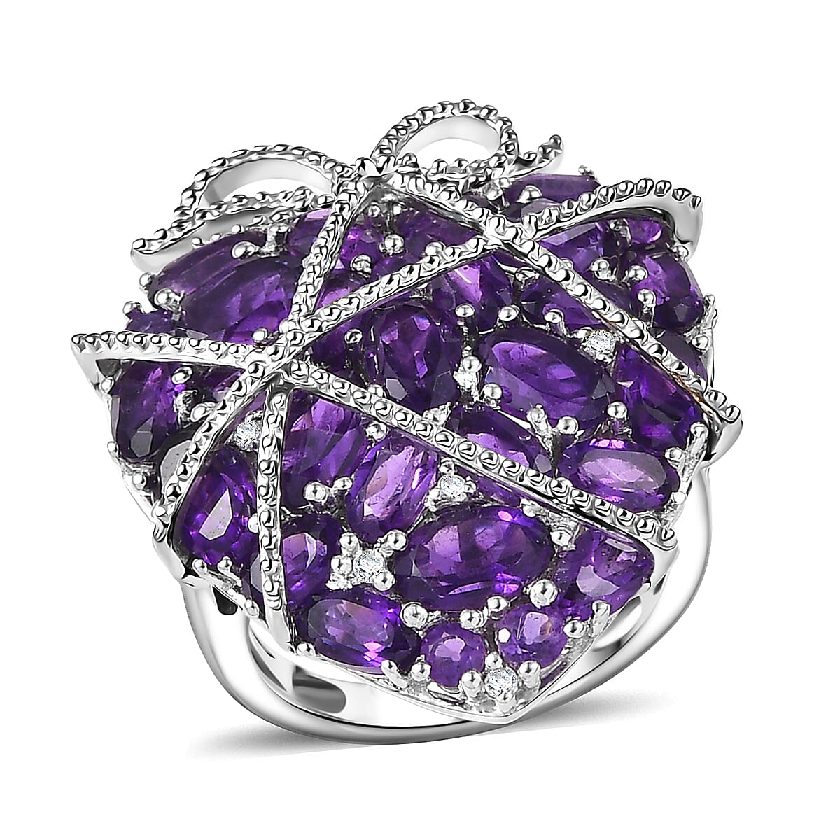 GP Special Amore Collection Premium African Amethyst and White Zircon 5.85 ctw Ring in Rhodium Over Sterling Silver (Size 10.0) (Del. in 8-10 Days)
