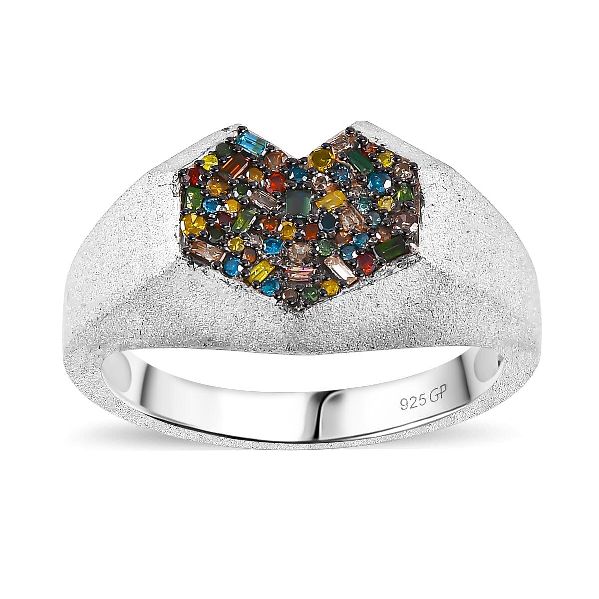 This GP diamond ring in sterling silver is inspired by the heart. The diamonds, coveted for their shine and brilliance, are placed in a cluster style and securely set in prong settings for lasting durability. Crafted in sterling silver with a premium finish, this piece is part of GP's exclusive collection, featuring the signature blue sapphire on the back.
