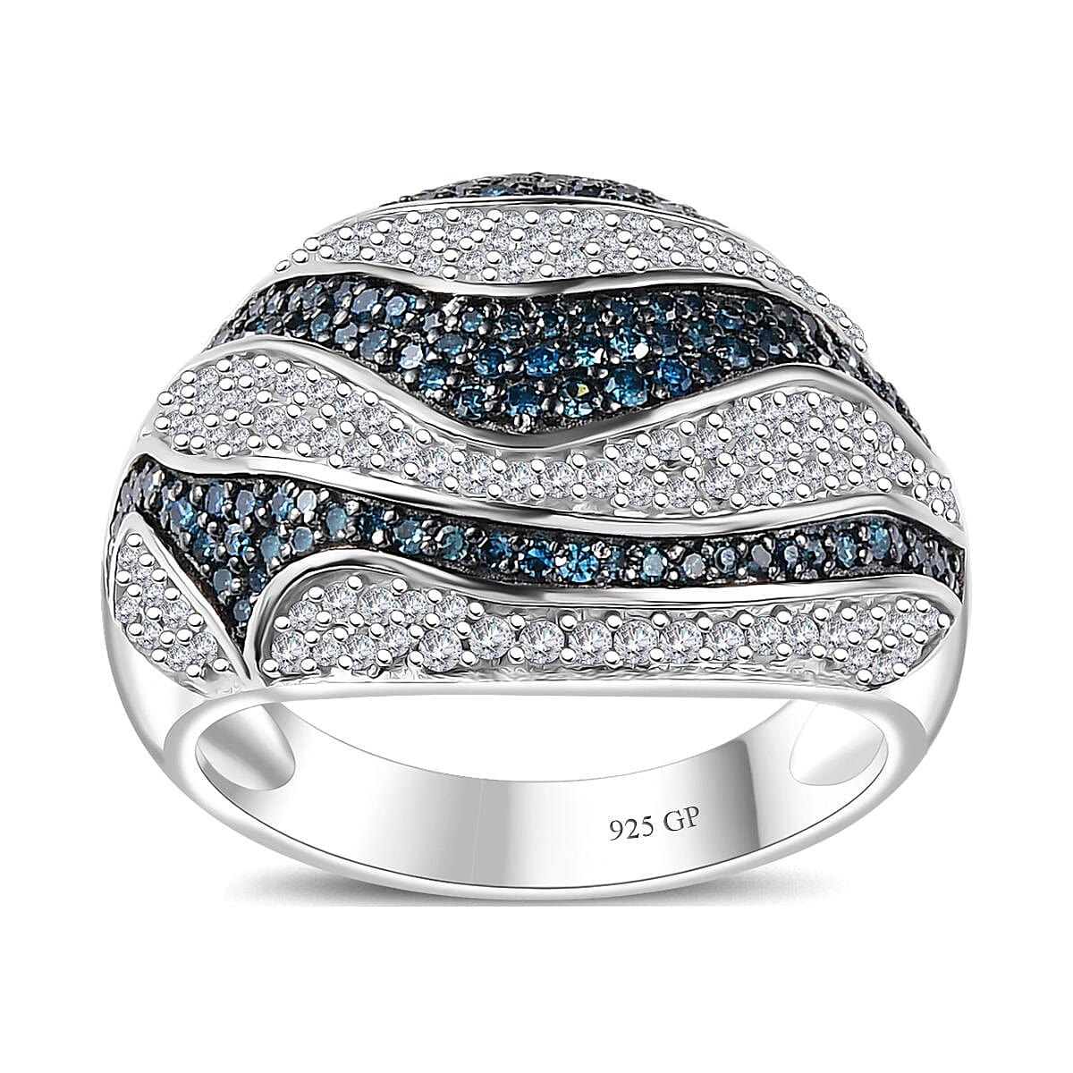 GP Special Venetian Sky Collection Blue and White Diamond 1.00 ctw Ring in Rhodium Over Sterling Silver (Size 8.0)