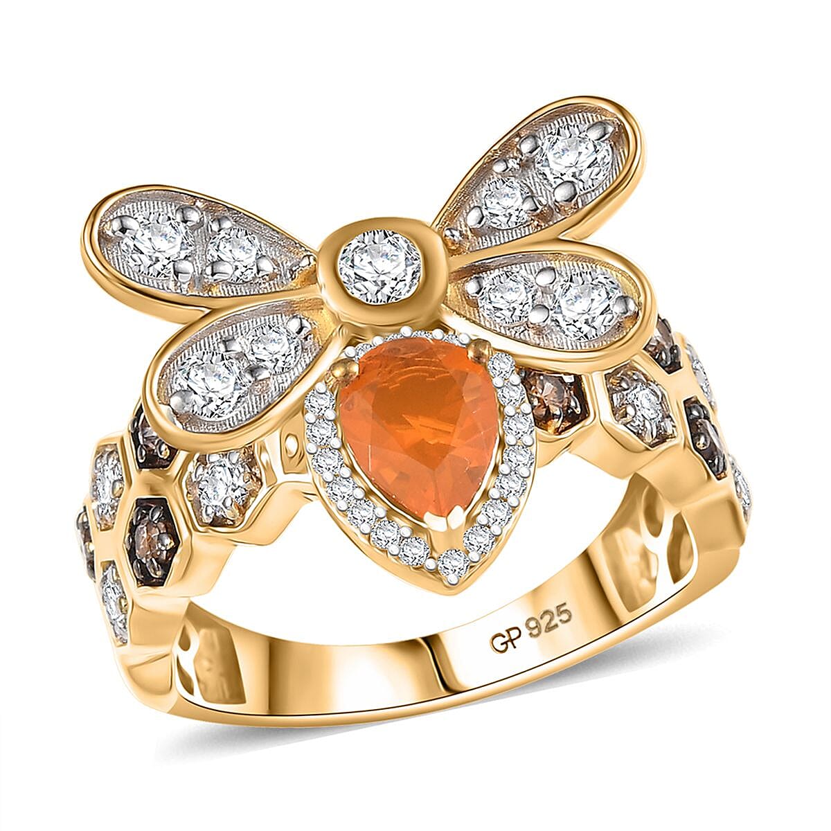 GP Trionfo Collection Jalisco Fire Opal and Multi Gemstone 2.30 ctw Bee Ring in 18K Vermeil Yellow Gold Over Sterling Silver (Size 10.0)