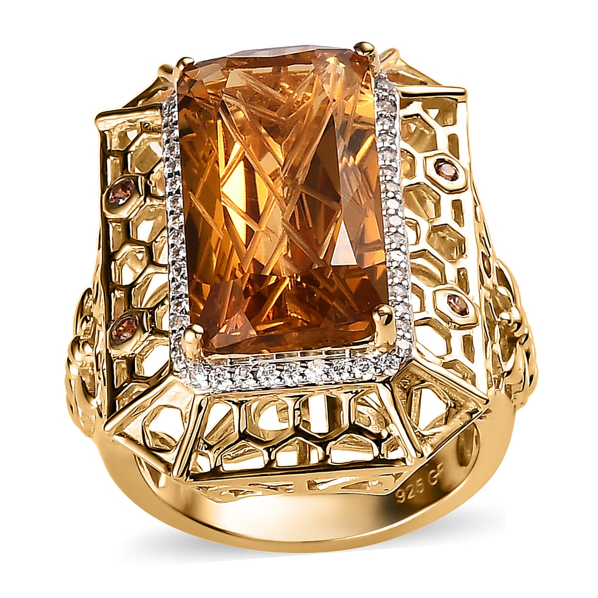 GP Trionfo Collection Premium Brazilian Citrine and Multi Gemstone Ring in Vermeil Yellow Gold Over Sterling Silver (Size 7.0) 12.00 ctw
