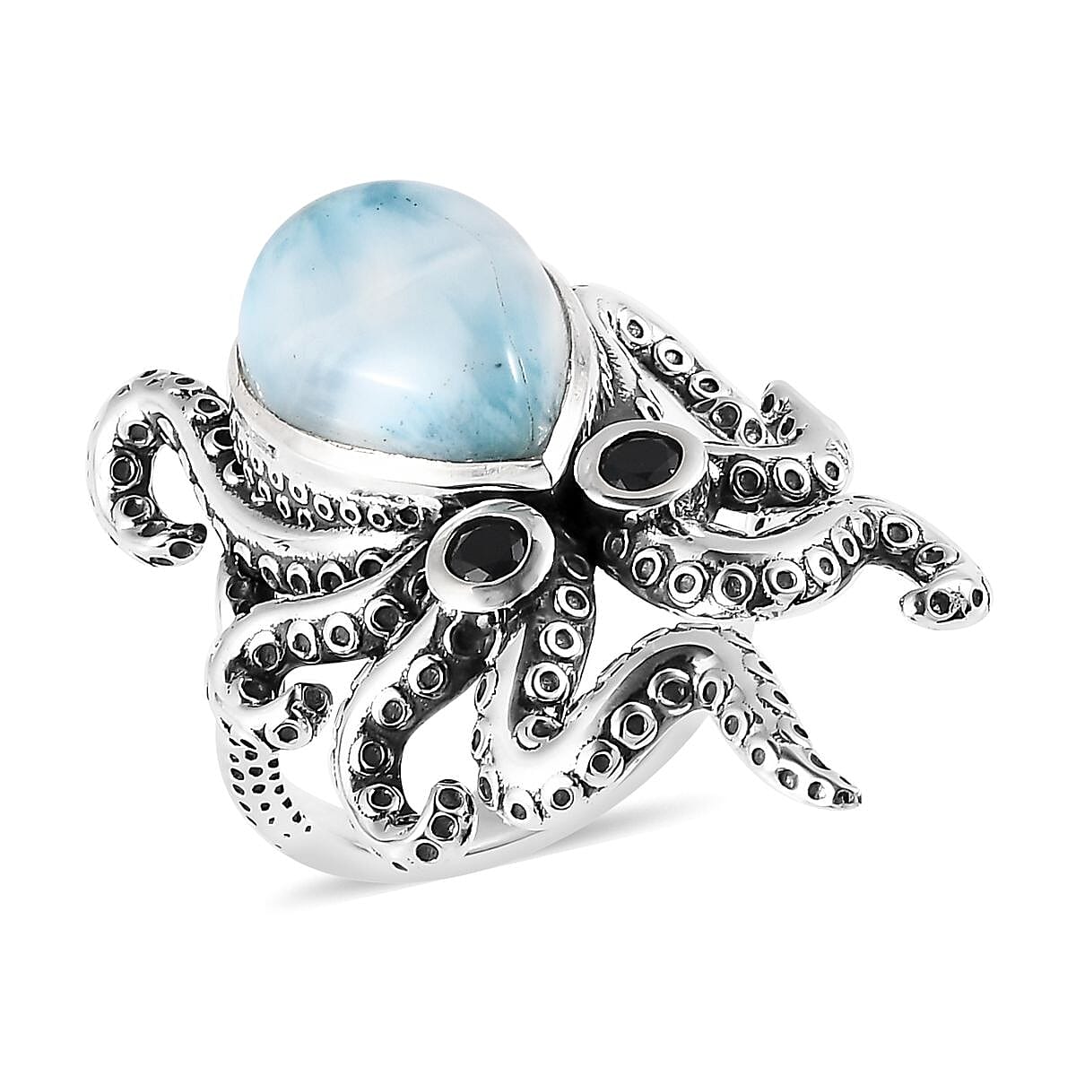 GP Trionfo Collection Premium Larimar and Thai Black Spinel Octopus Ring in Sterling Silver 6.50 ctw