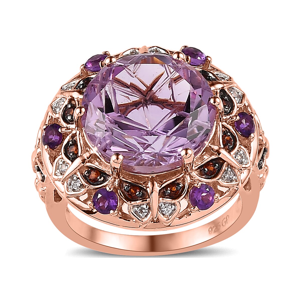 GP Trionfo Collection Rose De France Amethyst and Multi Gemstone Ring in Vermeil Rose Gold Over Sterling Silver (Size 7.0) 9.00 ctw