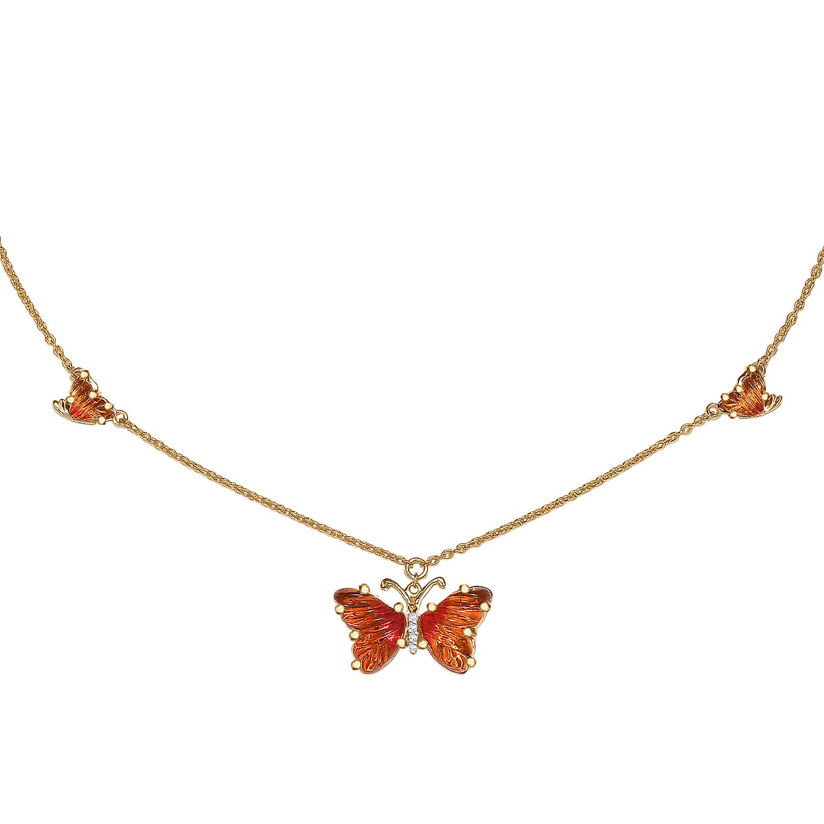 GP Whispers of Murano Style and White Zircon 0.10 ctw Butterfly Necklace in 18K Vermeil Yellow Gold Over Sterling Silver 18-20 Inches