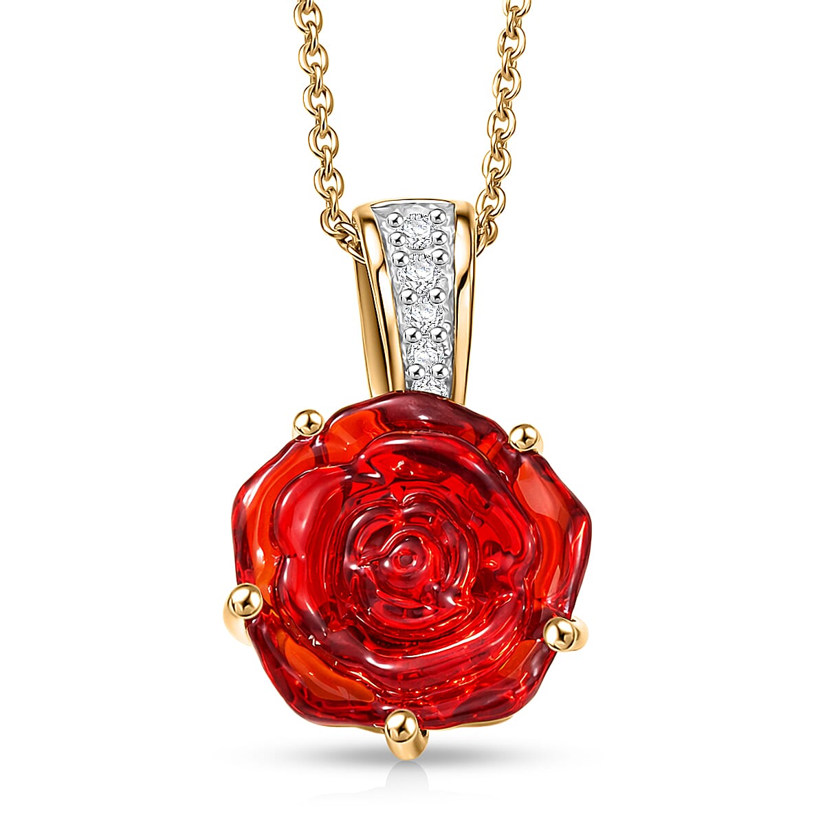 Elevate your loo with this GP Murano style glass and white zircon pendant necklace in 925 sterling silver. This elegant rose pendant necklace showcases Murano-style glass accented with white zircon for soft, feminine sparkle. Finished in 18K vermeil yellow gold, it adds graceful charm to everyday and dressy looks alike.