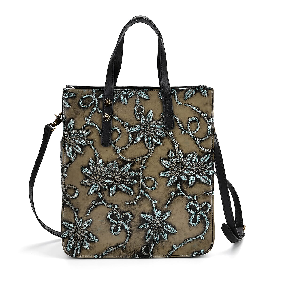Grand Pelle Black Flower Vine Embossed Genuine Leather Rectangular Bag with Shoulder Strap