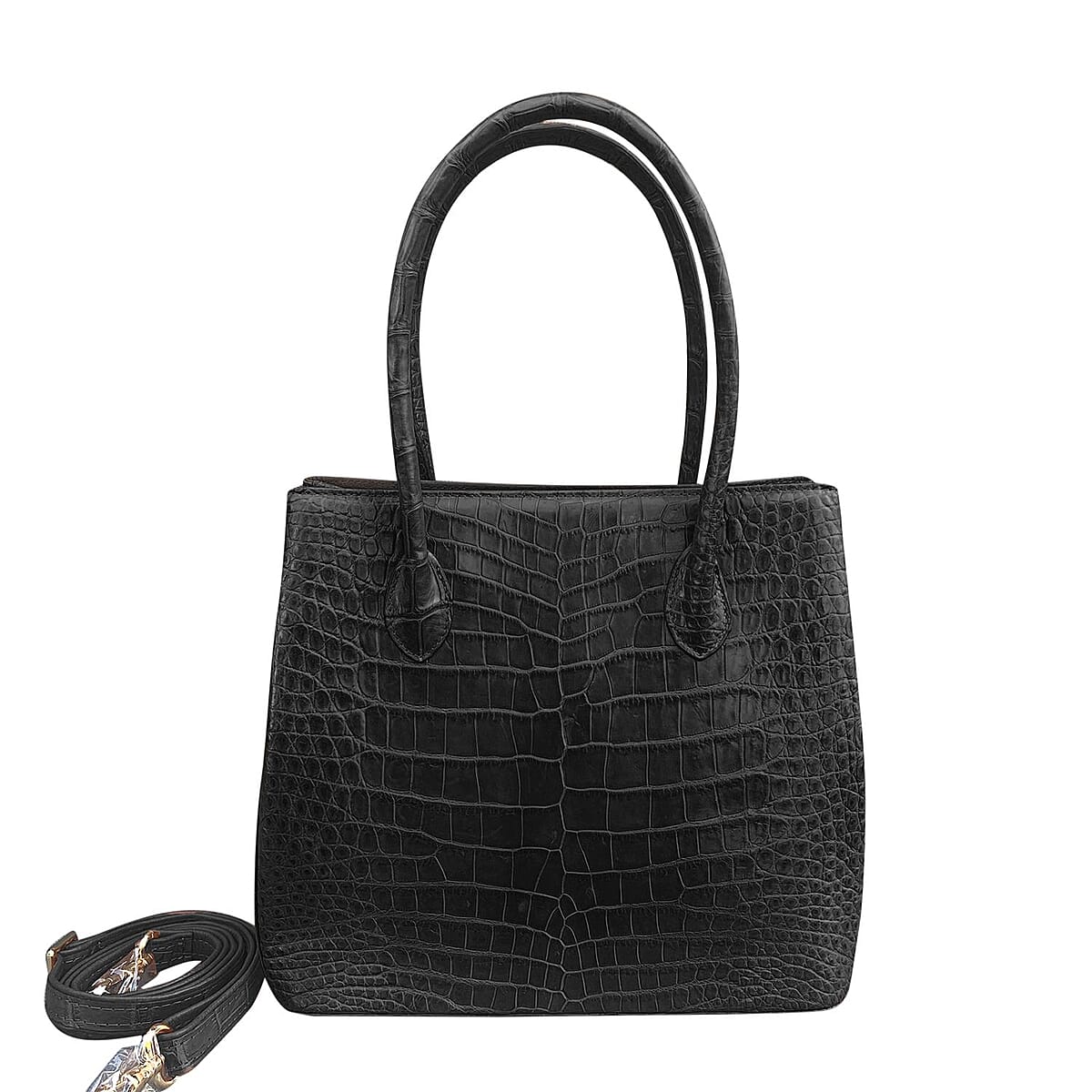 Grand Pelle Genuine Crocodile Leather Black Tote Bag for Women with Woven Shoulder Strap | Women's Designer Tote Bags | Leather Handbags | Leather Purse