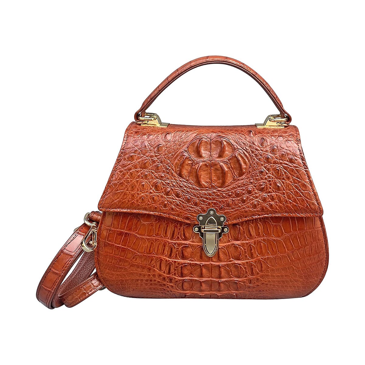 Grand Pelle Genuine Crocodile Leather Brown Tote Bag with Detachable Shoulder Strap