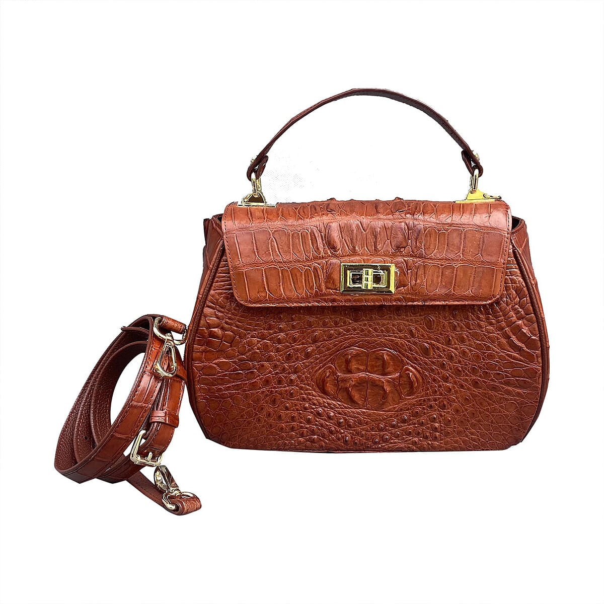 Grand Pelle Genuine Crocodile Leather Brown Tote Bag with Detachable Shoulder Strap