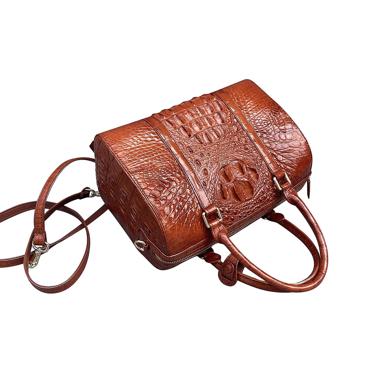 Grand Pelle Genuine Crocodile Leather Brown Trapezoid-shaped Tote Bag with Detachable Shoulder Strap