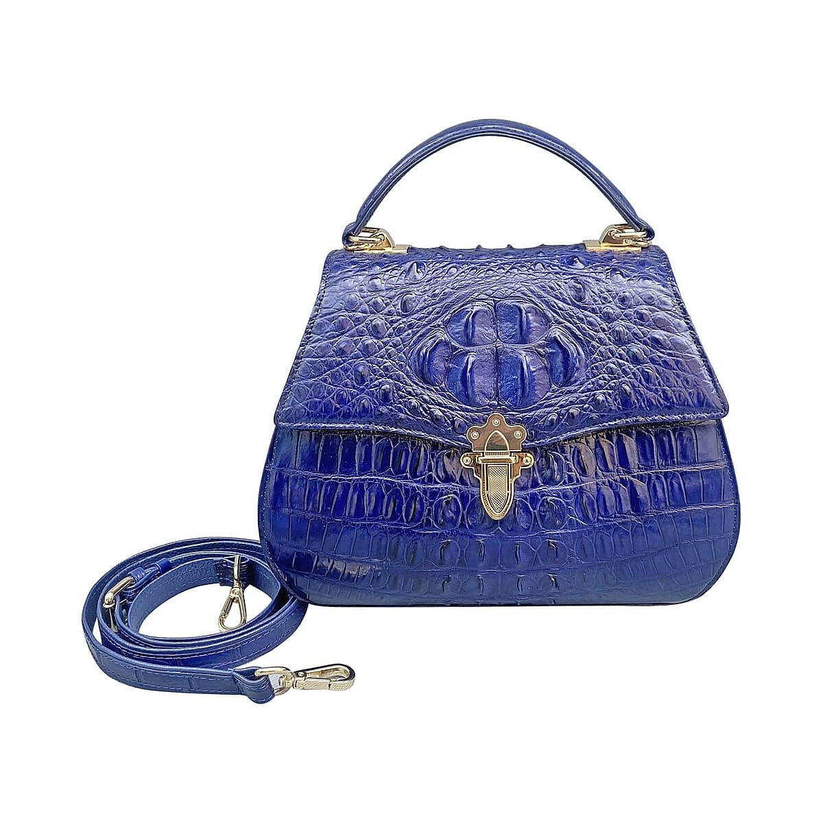Grand Pelle Genuine Crocodile Leather Navy Tote Bag with Detachable Shoulder Strap