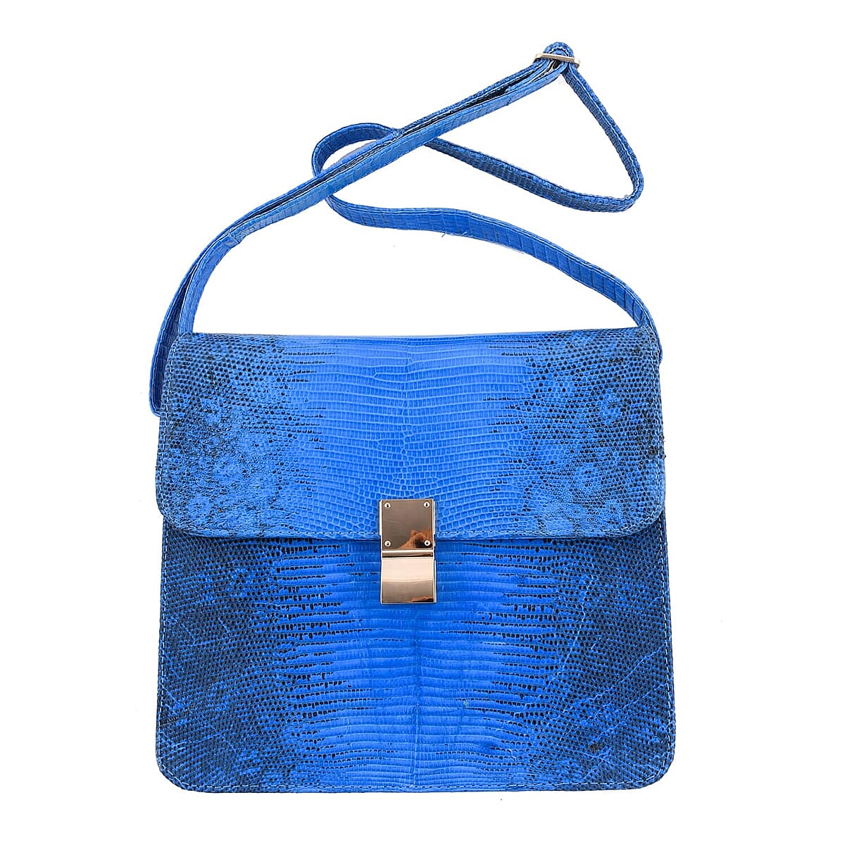 Grand Pelle Lizard Collection Handmade 100% Genuine Lizard Leather Dark Blue Color Crossbody Bag