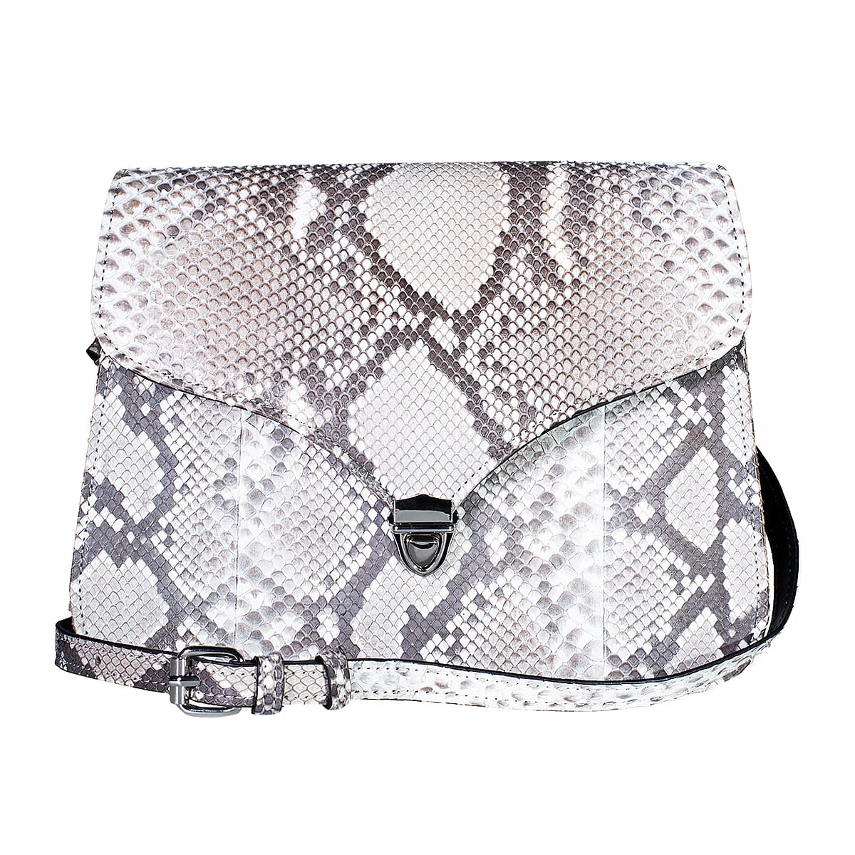 Grand Pelle Natural Genuine Python Leather Flap Bag with Shoulder Strap