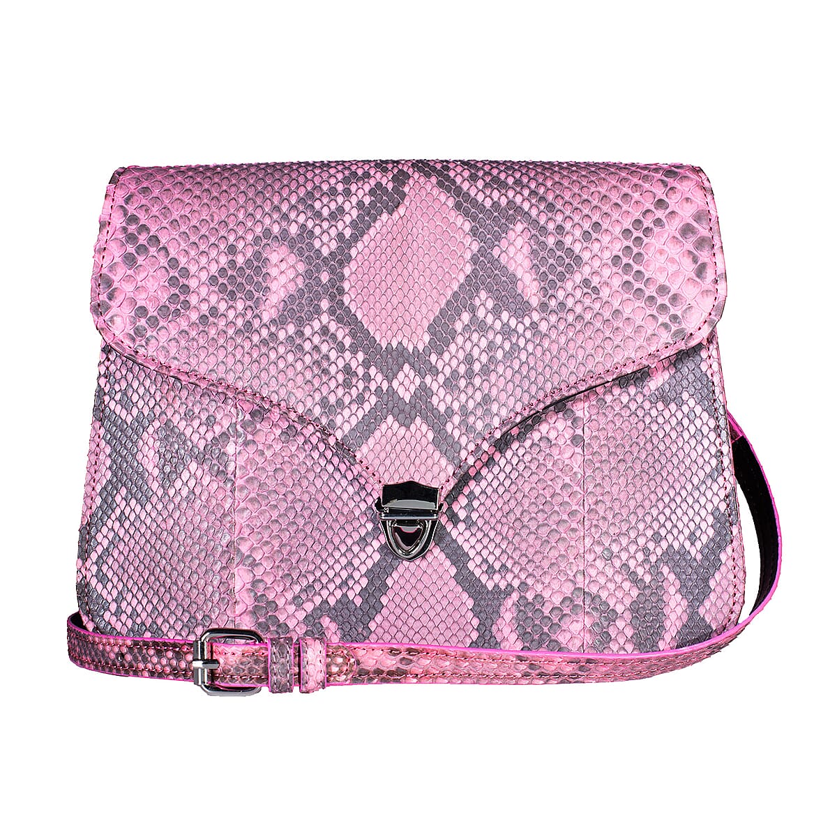 Grand Pelle Pink Genuine Python Leather Flap Bag with Shoulder Strap