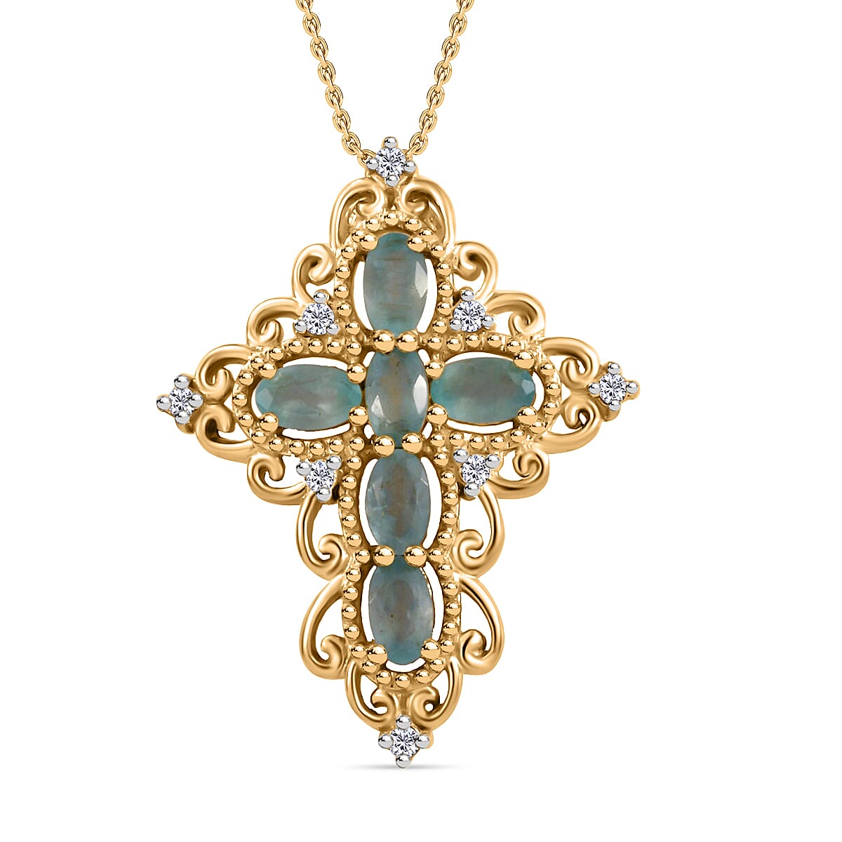 Grandidierite and Cambodian Zircon Necklace in Vermeil YG Over Sterling Silver, Cross Pendant 1.50 ctw (20 in)