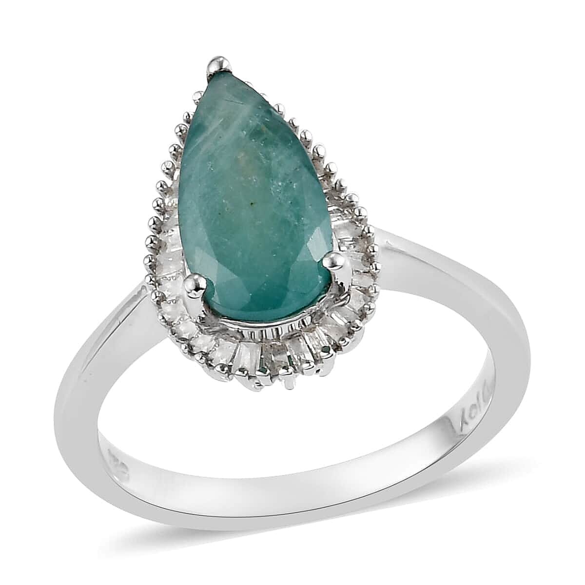 Grandidierite and Diamond Halo Ring in Platinum Over Sterling Silver (Size 7.0) 2.10 ctw